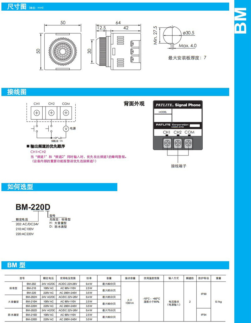 日本派特萊patlite蜂鳴器bm 2h 24vac Dc