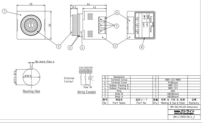 Bm 202h. BM2 Electronic Sound Alarm BM from PATLITE MISUMI offers free CAD downloads, short lead times, competitive pricing, and no minimum order quantity Purchase BM2 Electronic Sound Alarm BM from PATLITE, FA & metal molding parts, industrial tools and consumables. New Frontiers in Safety, Security and Comfort File Downloads BM 50mm square, 2 buzzers The BM is an extremely small design, with two buzzer sounds, that is ideal for installation on control panels or production equipment. Bm2h Patlite Audible Alarm Signal Phone Horn New (692% similar) Up for sale Patlite bm2h fc001 audible alarm, signal phone horn 24v new we have a 100% return refund policy, should there be any problem Buy with confidence condition new in box thanks for looking Ats.