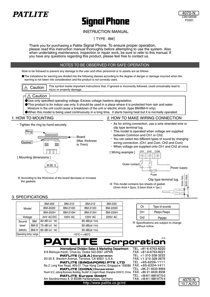 BM2H BM2 D 100V AC BM210H BM210 2V AC BM2H BM2 Ch2 Ch1 Ch Pipipipi Peepo Peepo Type of sounds 1V AC BM212H BM212 BM2 BM210 BM212 BM2 BM Þ Outer contact Fuse Power supply * * Specifications are subject to change without notice * Mounting dimensions Caution INSTRUCTION MANUAL. BM2H 2, ฿ 1, ฿ ราคายังไม่รวมส่วนลด Add to cart;. Buy BM2HFC001 Patlite (usa) Panel mount alarm with 2 selectable sounds, 90dB Newark offers fast quotes, same day shipping, fast delivery, wide inventory, datasheets & technical support.