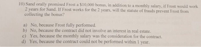 Solved Sand Orally Promised Frost A 10 000 Bonus In Ad Chegg Com
