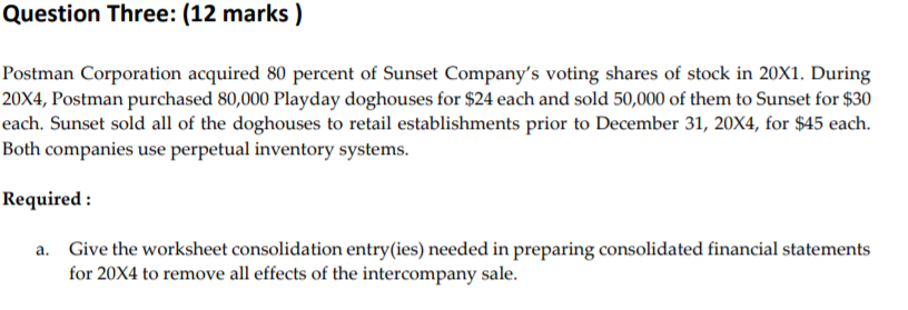 Question Three 12 Marks Postman Corporation Acq Chegg Com