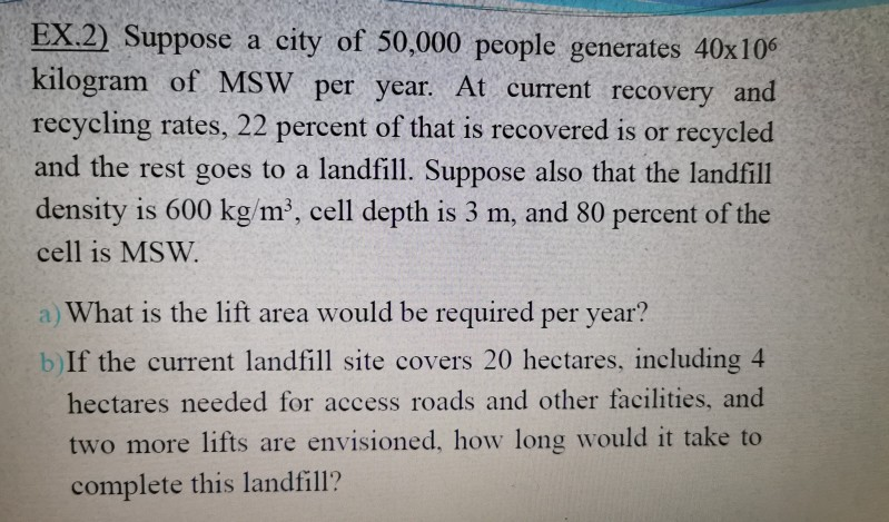 Solved Ex 2 Suppose A City Of 50 000 People Generates 40 Chegg Com