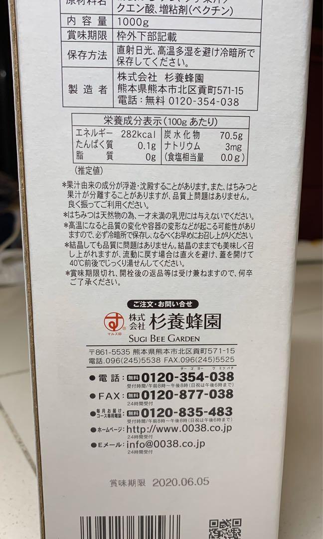 Import From Japan Yuzu Honey 1 000g Sugi Bee Garden Food Drinks Beverages On Carousell