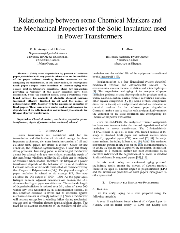 Pdf Relationship Between Some Chemical Markers And The Mechanical Properties Of The Solid Insulation Used In Power Transformers Issouf Fofana Academia Edu