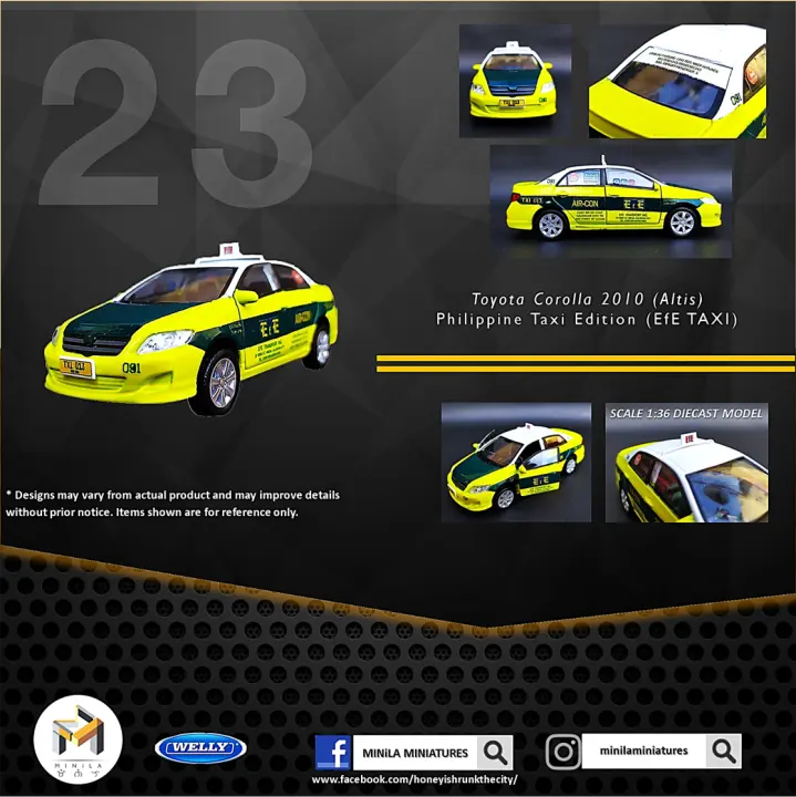 23 Minila Miniatures 1 36 Scale Toyota Altis Efe Taxi Philippine Taxi Edition Lazada Ph