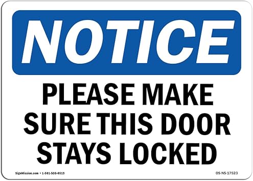 Osha Notice Sign Please Make Sure This Door Stays Locked Plastic Sign Protect Your Business Work Site Warehouse Shop Area Made In The Usa Amazon Ca Office Products