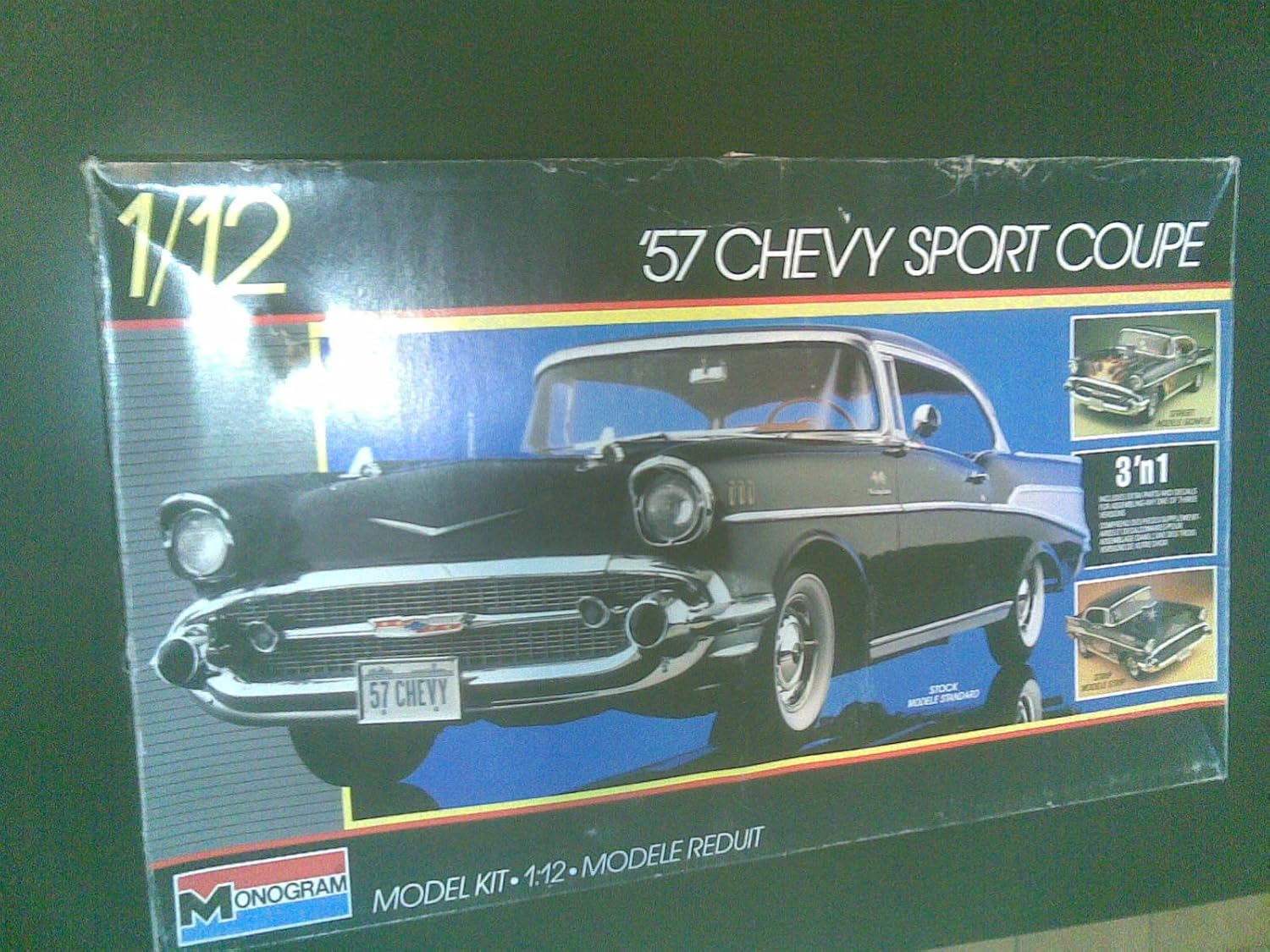 Three in one vintage 57 Chevy Coupe model kit, large box, 1/12 scale Finished size 1675" long This kit is still sealed Small tear out spot on back, some tiny perforations across front see pictures. REVELL57 Chevy Bel Air A great item for the person who enjoys classic cars!. Visit Model Roundup for Model Car Kits The best site for plastic model car kits!.
