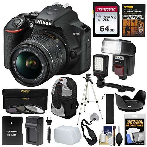 Buy Nikon D3500 Digital Slr Camera Amp 18 55mm Vr Dx Af P Lens With 64gb Card Backpack Battery Charger Flash Tripod Kit Features Price Reviews Online In India Justdial