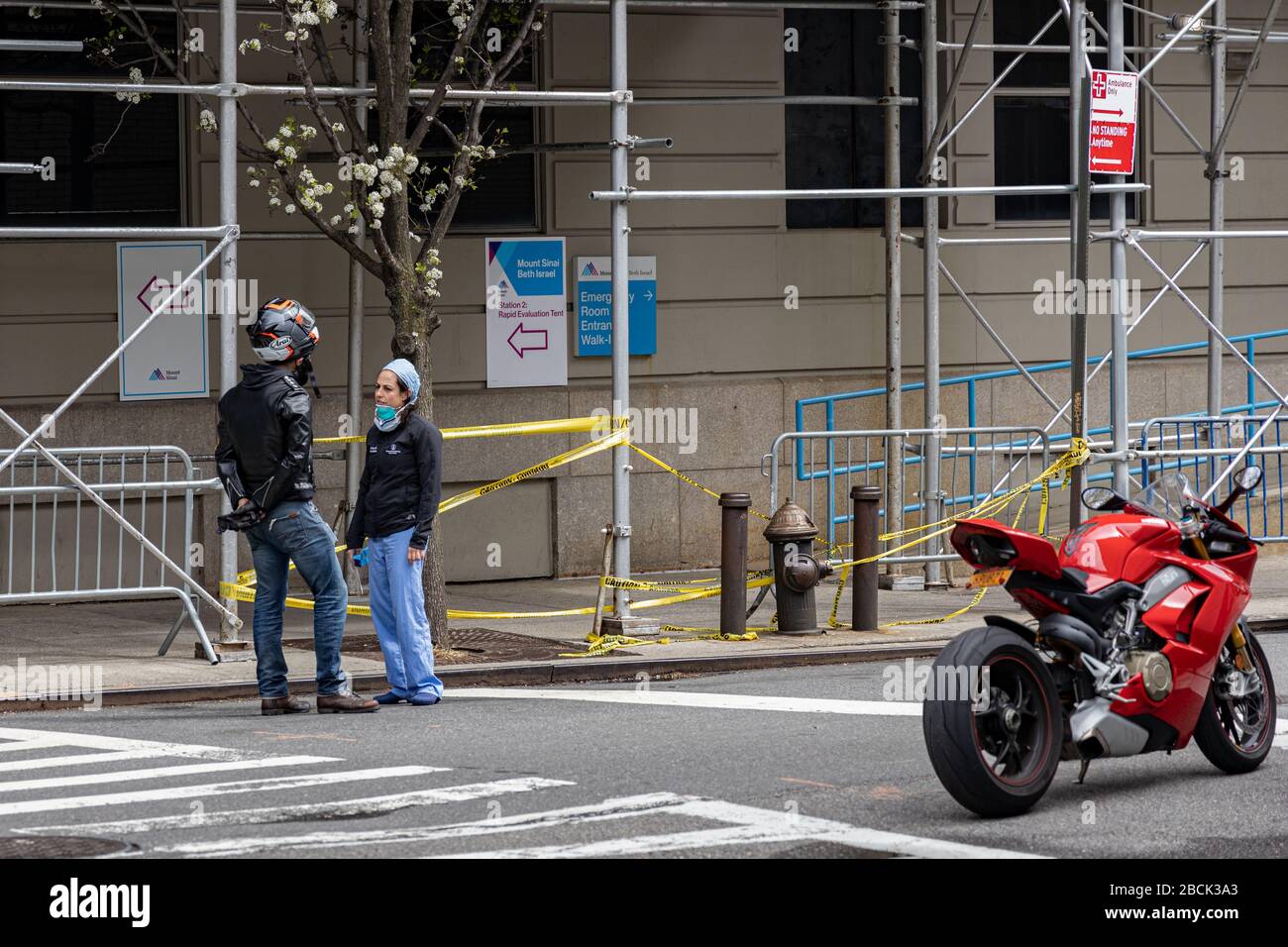 A Husband Visits His Health Care Professional Wife At Mount Sinai Beth Israel In Manhattan New York On April 04 The Spread Of Covid 19 Coron Stock Photo Alamy
