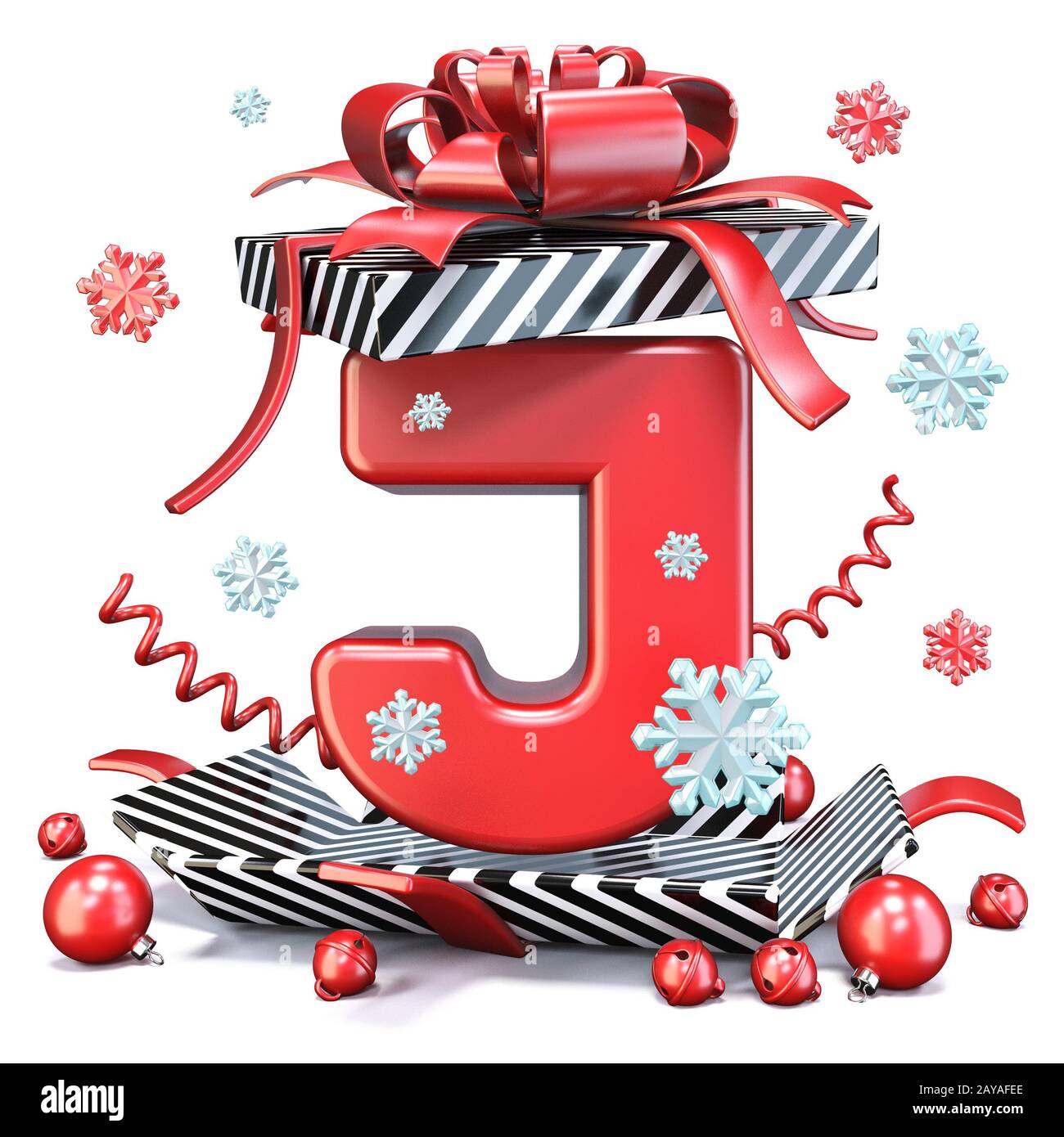 Letter J Gift Box Shaped Of A Letter J With Red Ribbon Bow 3d Rendering Isolated On White Background Stock Photo Alamy