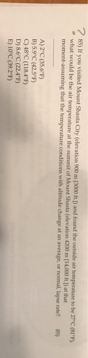 Solved 7 85 If You Visited Mount Shasta City Elevation Chegg Com