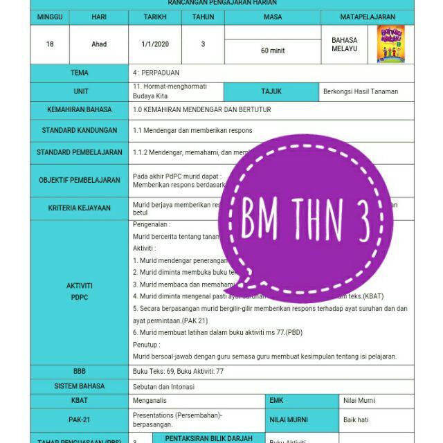 Rph Bahasa Melayu Tahun 3 21 Rph Pak 21 Sekolah Rendah Online Shopping