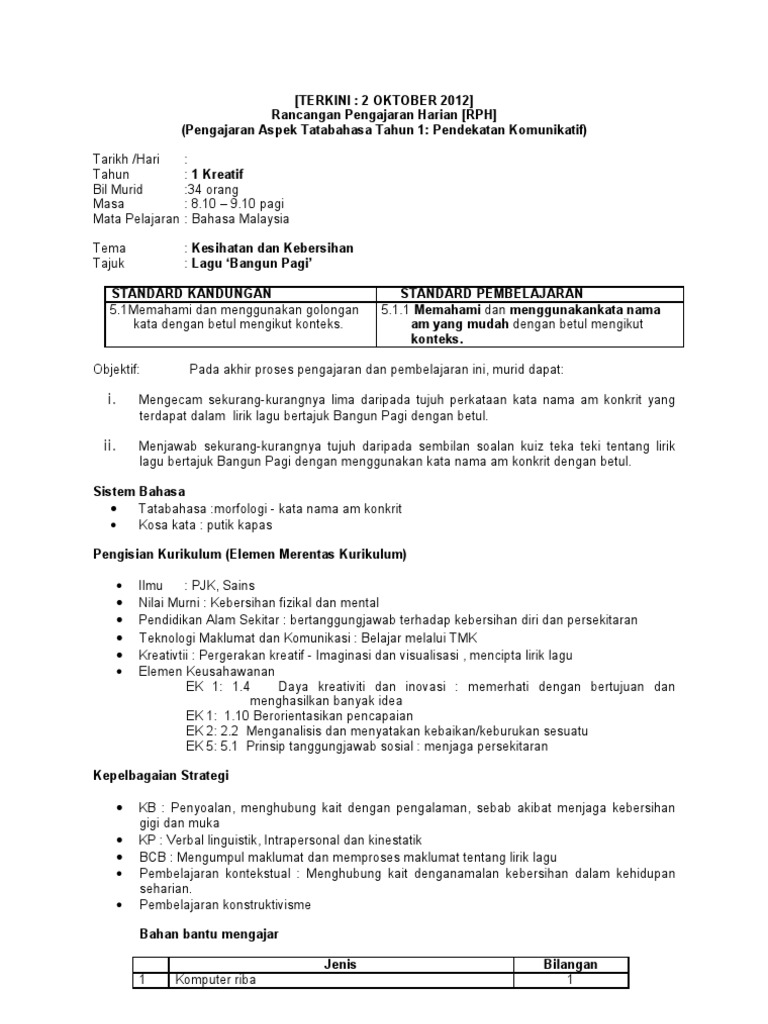 Free worksheet (year 1,2,3,4)?. RANCANGAN PENGAJARAN HARIAN BAHASA MELAYU TAHUN TIGA KSSR Tarikh Masa 7300 pagi Kelas 3 Bilangan Murid 30 orang Umur Murid 9 tahun Tema Alam Ceria Hidup Sejahtera Tajuk Jagalah Alam Kita Hasil pembelajaran (i) Standard Kandungan 22 Membaca dan memahami perkataan, frasa dan ayat daripada pelbagai sumber dengan sebutan yang betul. Link order melalui website (rph.