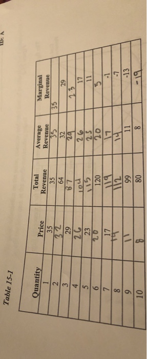 Solved Id Table 15 1 Ouant Total Revenue 35 64 Average R Chegg Com