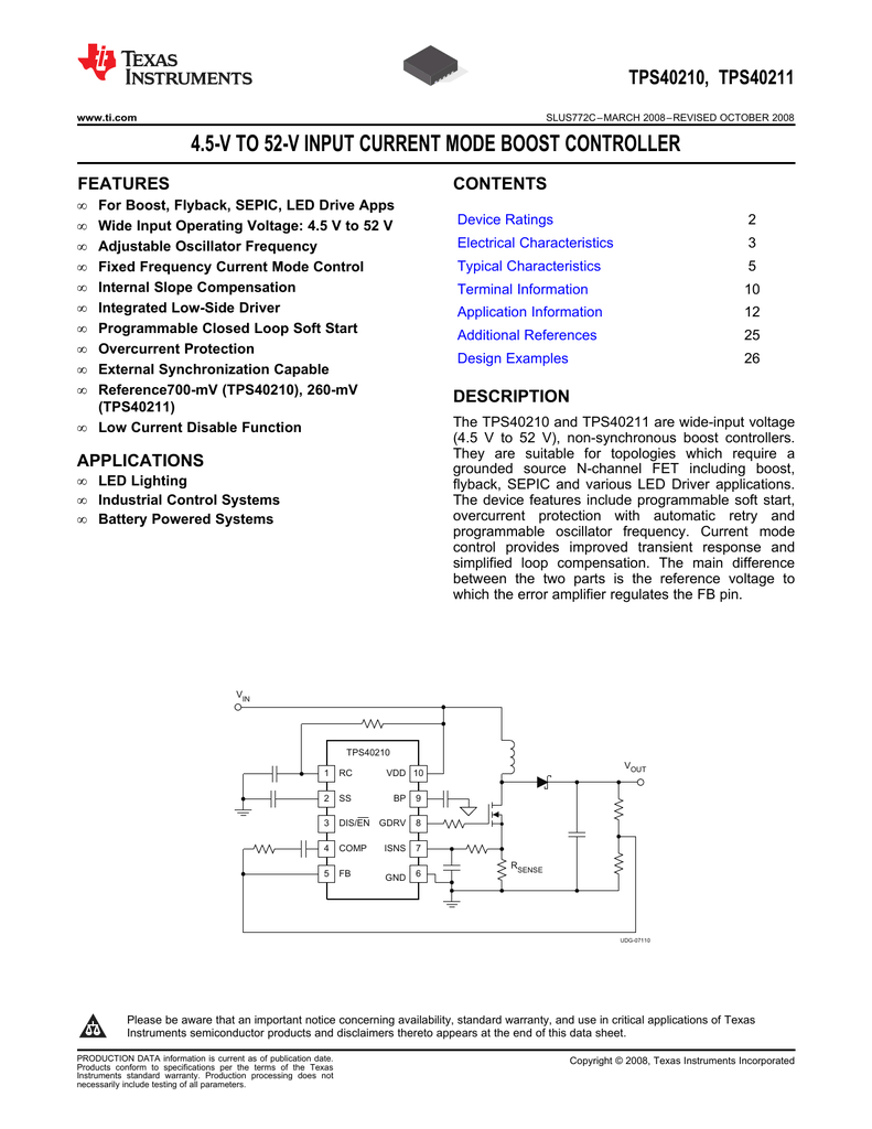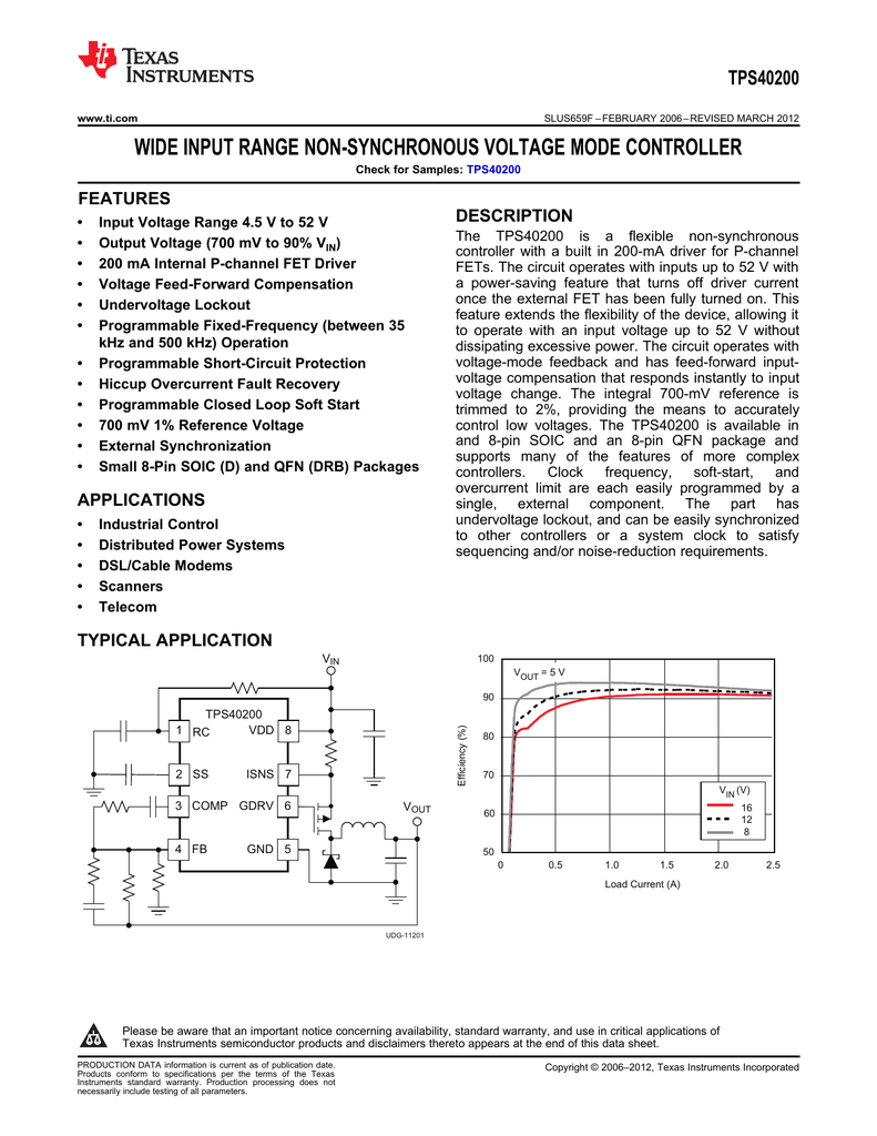 Wide Input Range Non Synchronous Voltage Mode Controller Tps400 Features Description Manualzz