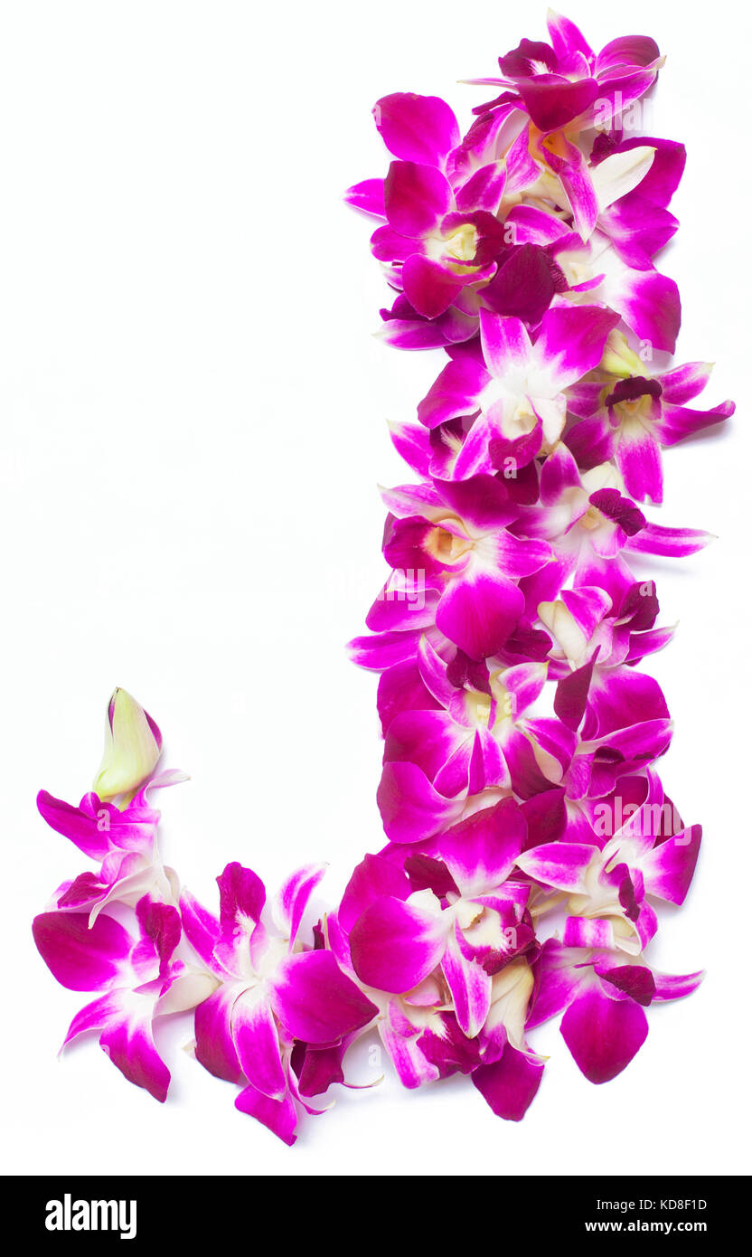 Letter J From Orchid Flowers Isolated On White Stock Photo Alamy