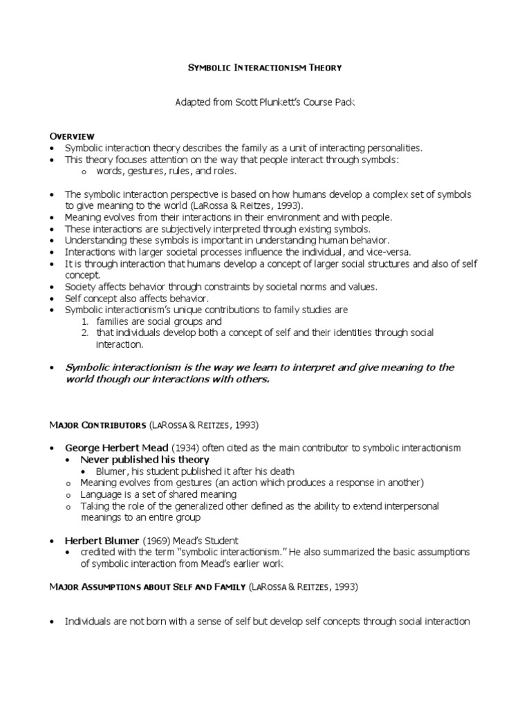 The symbolic interactionism theory, the third of the three most recognized theories of sociology, is based on Weber’s early ideas that emphasize the viewpoint of the individual and how that individual relates to society For Weber, the culmination of industrialization,. Definition of symbolic interactionism in the Definitionsnet dictionary Meaning of symbolic interactionism What does symbolic interactionism mean?. Definition of Symbolic Interactionism (noun) The theory that society is possible because of the shared meanings and social patterns created during social interactions Etymology of Symbolic Interactionism Herbert Blumer (1900–1986) is credited with coining the term.