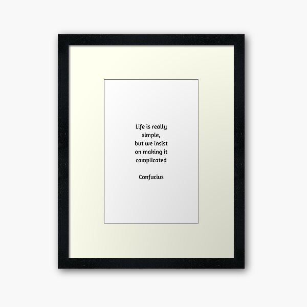 Originally Answered If Confucius is right saying, “Life is really simple, but we insist on making it complicated” then why do we make life complicated or rather, it what way do we complicate life?. When we make life convenient, we make life complicated Humans existed for hundreds of thousands of years in what we would now consider primitive—and perhaps even barbarous—circumstances. LIFE IS REALLY SIMPLE, BUT WE INSIST ON MAKING IT COMPLICATED Confucius Understand the true meaning of selflessness and start loving without condition, talking without bad intentions, giving without any reason, and caring for people without any expectations Choosing to live a simple life can save you from being stressed, depressed.