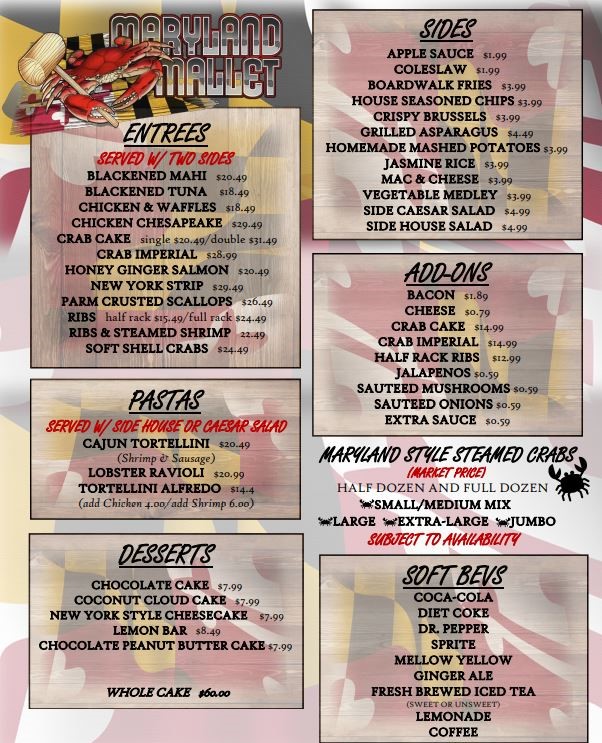 Maryland Mallet Restaurant Westminster Md Steamed Crab Carryout Carroll County Maryland Seafood Steaks q