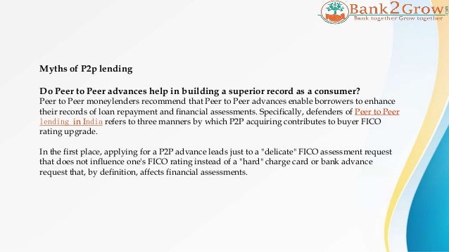 Marketplace lending (sometimes referred to as “peertopeer” or “platform” lending) is a relatively new kind of online lending Marketplace lending uses online “platforms” to connect consumers or businesses who seek to borrow money with investors willing to buy or invest in the loan In most cases, once a loan is made the. 1 Peertopeer lending is a form of crowdfunding used to raise loans for people who need to borrow, from people who want to invest 2 It enables individuals to borrow and lend money without any financial institution as an intermediary, and extends credit to borrowers who are unable to get it through traditional financial institutions. Peertopeer (P2P) lending is an option for borrowing that avoids using a traditional bank or credit union If you’re in the market for a loan, it’s worth evaluating P2P lenders as you shop around P2P loan rates can be surprisingly low, especially if your credit scores are good, and the application process may be easier than what you’d experience when borrowing from a bank.