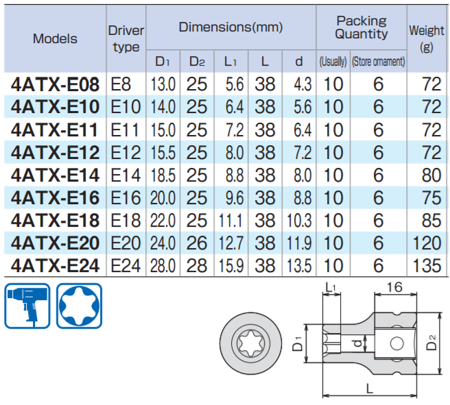 Tone 4atx E Torx Socket For Impact Wrench Kouei Japan Trading Co Ltd