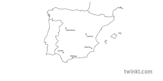 Spain Map Black And White Illustration Twinkl