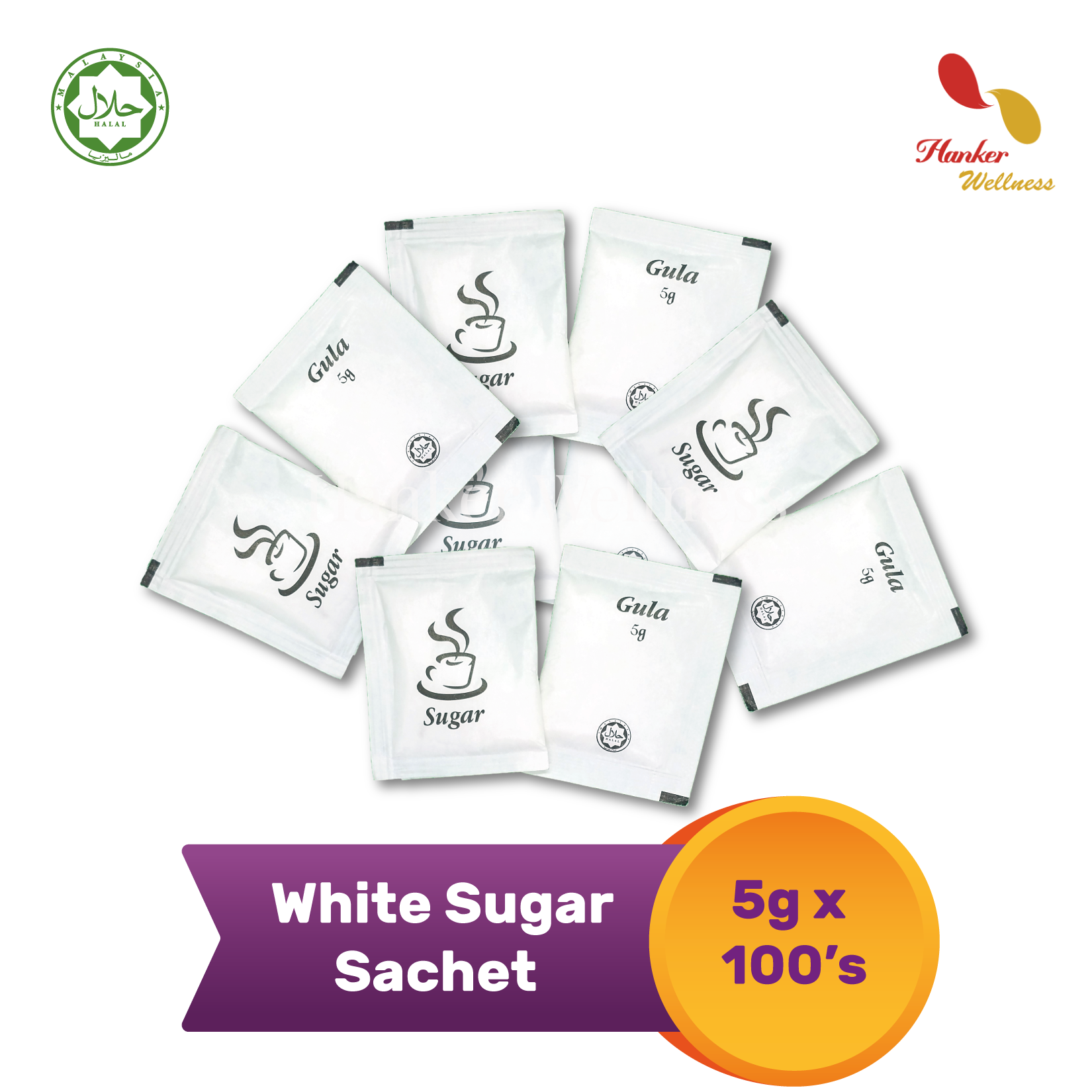 White Sugar Sachet Gula 白糖 5g X 100 Sachet Halal Lazada