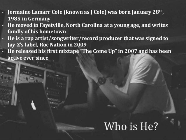 J Cole (Jermaine Lamarr Cole) January 28th lyrics Intro / Can I make a mil. Jermaine Lamarr Cole (born January 28, 1985) is a Germanborn American rapper, singer, songwriter, and record producer Born on a military base in Germany and raised in Fayetteville, North Carolina, Cole initially gained recognition as a rapper following the release of his debut mixtape, The Come Up, in early 07Intent on further pursuing a musical career, he went on to release two. Jermaine Lamarr Cole (born January 28, 1985), better known by his stage name J Cole, is an American hip hop recording artist and record producer Raised in Fayetteville, North Carolina, Cole initially gained recognition as a rapper following the release of his debut mixtape, The Come Up, in early 07.