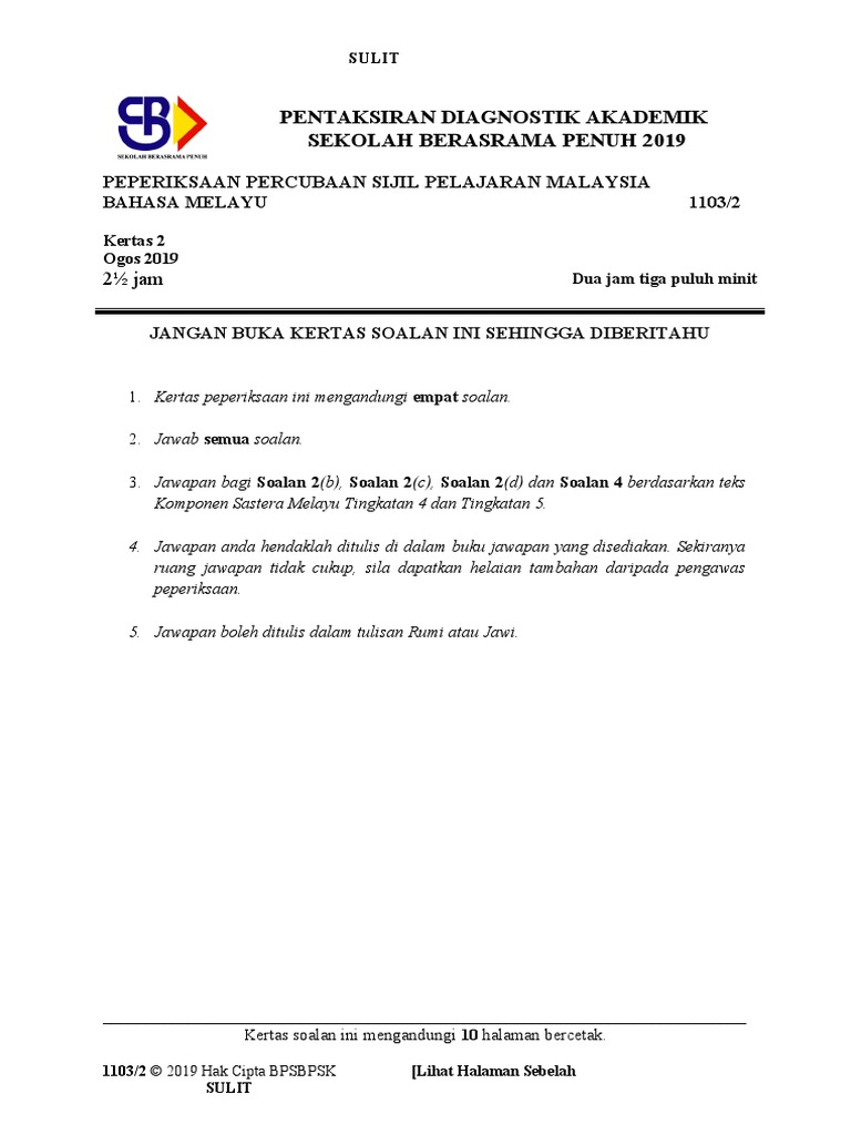 Soalan Percubaan Spm 19 Bahasa Melayu
