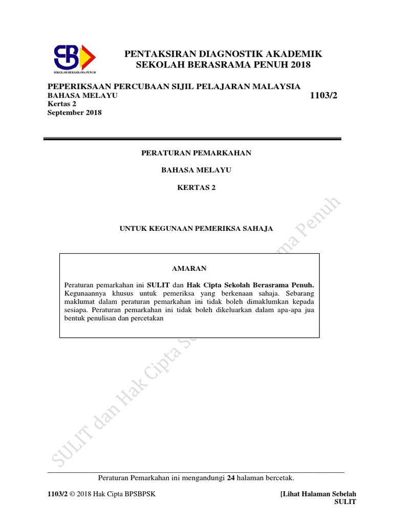Skema Kertas 2 Percubaan Bm Spm Sbp Pdf Sulit 1103 2 Pp Bahagian Pengurusan Sekolah Berasrama Penuh Dan Sekolah Kecemerlangan Pentaksiran Diagnostik Course Hero