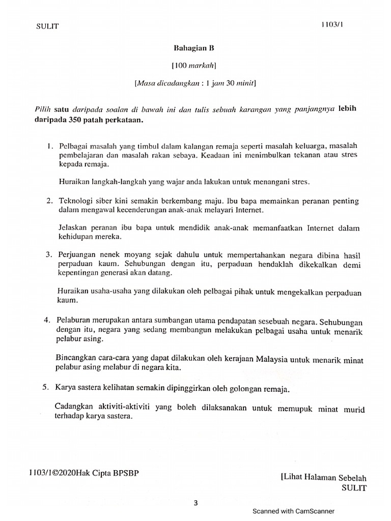 Soalan Percubaan Spm Bahasa Melayu 19 Melaka Persoalan N