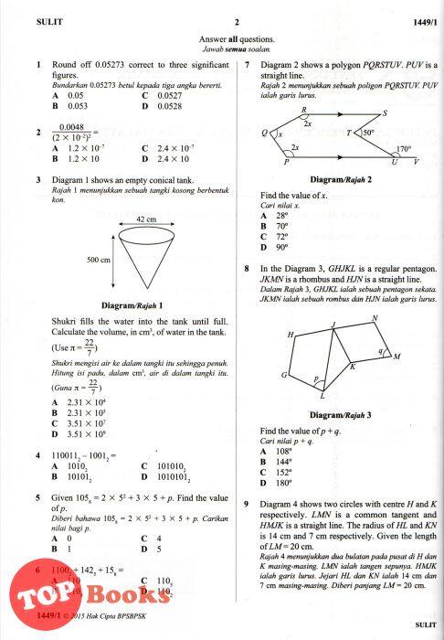 Topbooks Mahir Koleksi Kertas Percubaan Sekolah Berasrama Penuh Sbp Spm Mathematics Dwibahasa Lazada