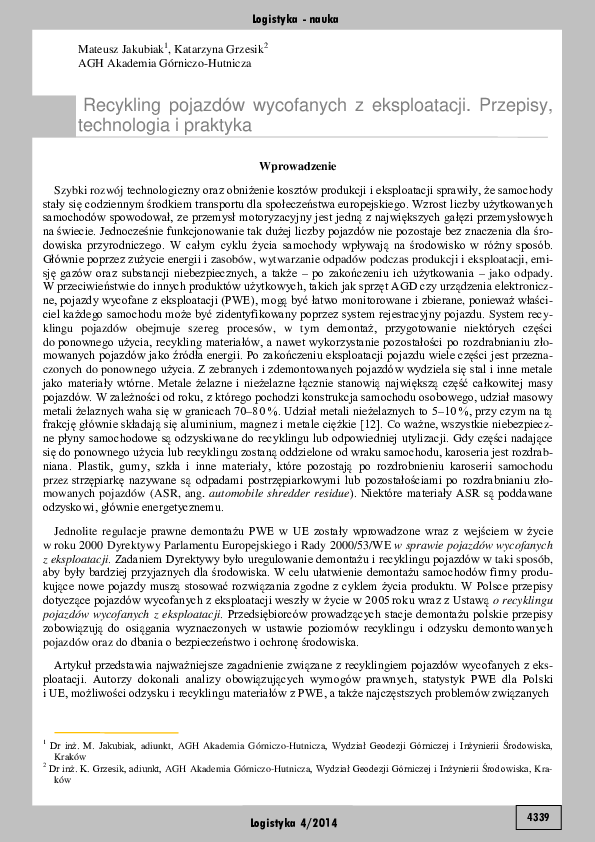 Pdf Recykling Pojazdow Wycofanych Z Eksploatacji Przepisy Technologia I Praktyka Katarzyna Grzesik Academia Edu