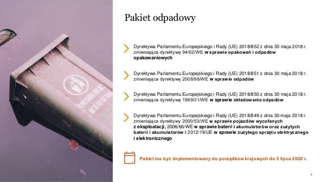 PDF Abstract The article presents contemporary problems on the plastic packaging market, resulting from changes in the legislation of the European Find, read and cite all the research you. Regulacje prawne Dyrektywa UE 00/53/WE z dnia 18 wrzenia 00 r w sprawie pojazdw wycofanych z eksploatacji Ustawa z dnia stycznia 05 r o recyklingu pojazdw wycofanych z eksploatacji Ustawa z dnia 29 czerwca 07 r o zmianie ustawy o recyklingu pojazdw wycofanych z eksploatacji Ustawa z dnia 21 kwietnia 01 r o odpadach Ustawa z. Dyrektywa Parlamentu Europejskiego i Rady 00/53/WE z dnia 18 września 00 r w sprawie pojazdów wycofanych z eksploatacji Dyrektywa parlamentu europejskiego i rady 12/19/UE z dnia 4.