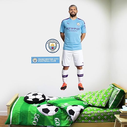 Official Licensed Football Entertainment Wall Stickers Sergio Aguero Manchester City Fc Wall Mural Mcfc Wall Decals Set The Beautiful Game