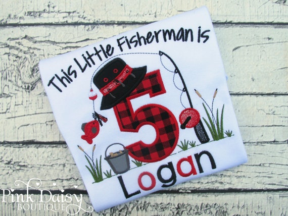 Fishing Birthday Shirt Age 1 9 Buffalo Plaid Gone Fishing Reeling In Big One Lumberjack Woodland 5th Birthday Applique Shirt By Pink Daisy Boutique Catch My Party
