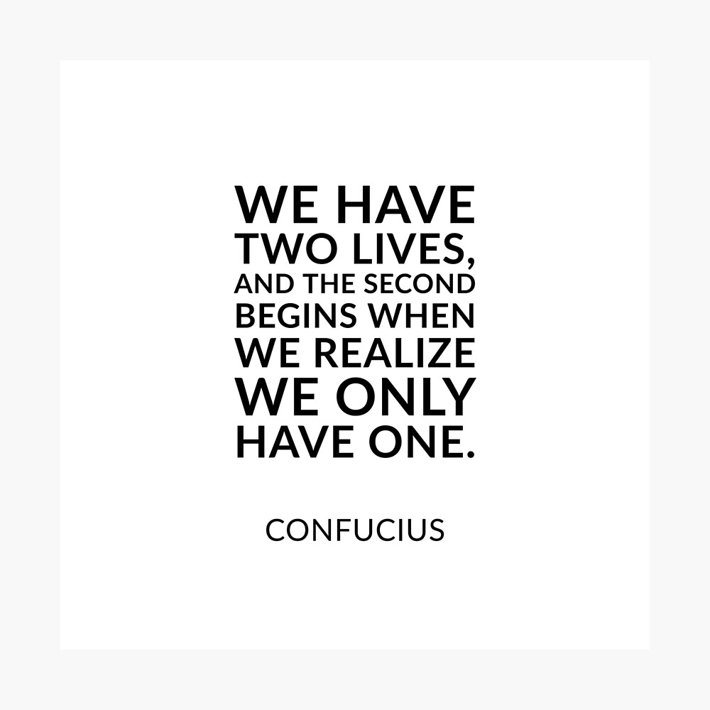 Philosophical Quotes About Life We Have Two Lives And The Second Begins When We Realize We Only Have One Confucius Poster By Ideasforartists Redbubble