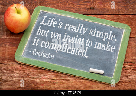 According to Confucius, “Life is really simple but we insist on making it complicated” You can buck convention and live by a simpler set of rules, rules that give you the freedom to enjoy. "Life is really simple, but we insist on making it complicated" "A superior man is modest in his speech but exceeds in his actions" "Be not ashamed of mistakes and thus make them crimes".