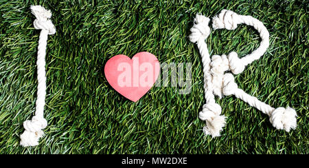 Text I Love E Made From Ropes On Grass Background Stock Photo Alamy