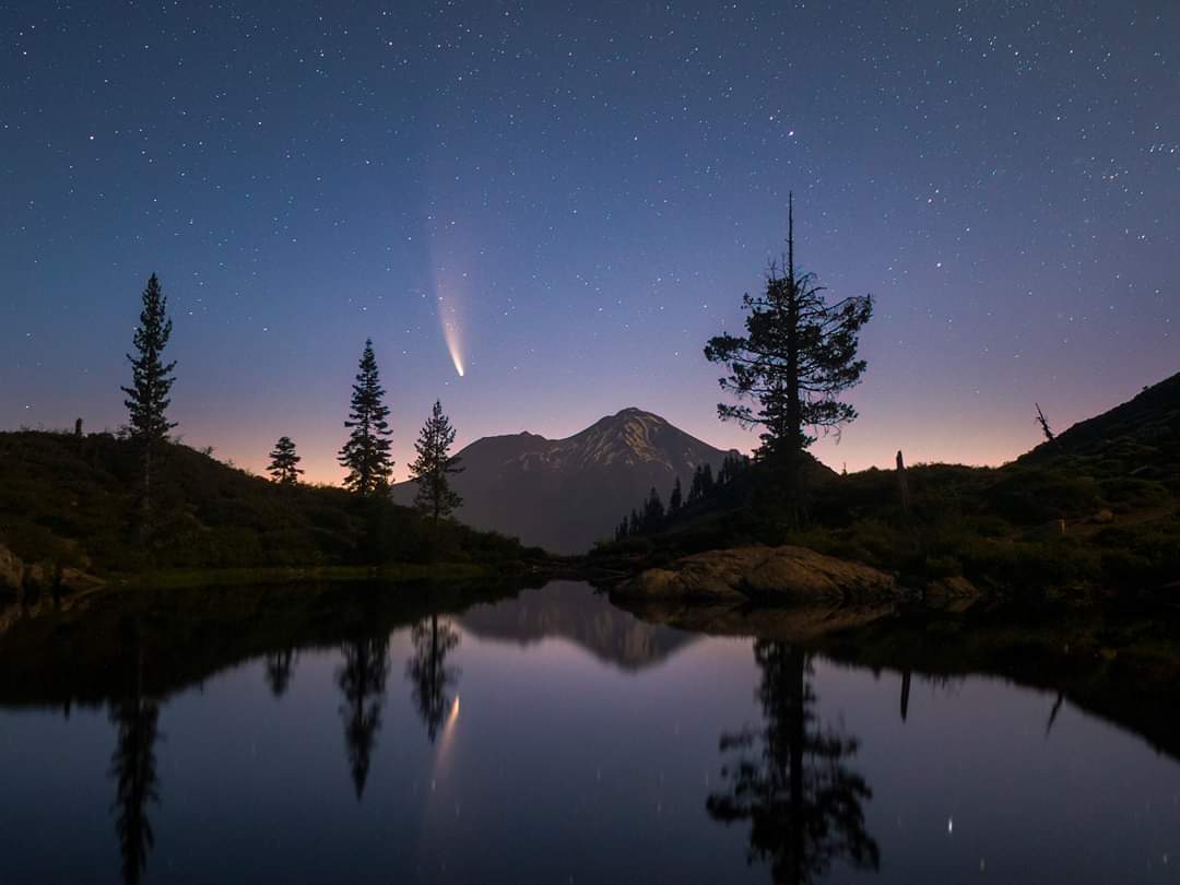 Cam Foreman Comet Neowise Rising Over Mt Shasta In Northern California Photo At Heart Lake By Corypoolephoto