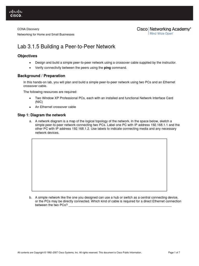 Building A Peer To Peer Network Lab Pdf Ccna Discovery Networking For Home And Small Businesses Lab 3 1 5 Building A Peer To Peer Network Objectives Course Hero
