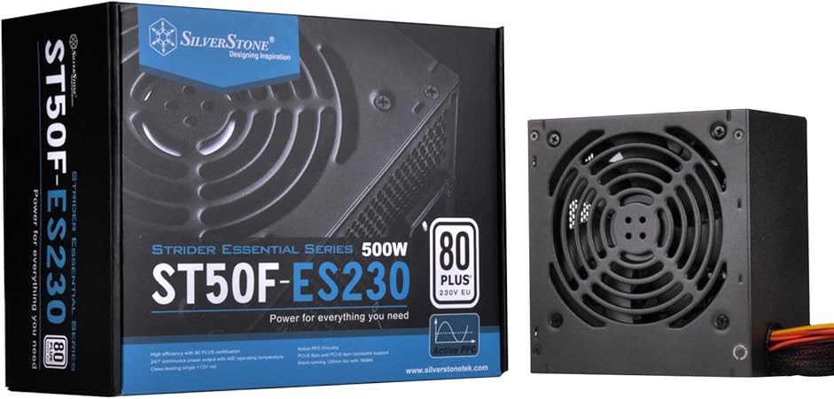 SilverStone 500w Strider Essential 80 Power Supply (SSTST50FES230 V2) High efficiency with 80 PLUS certification 24/7 continuous power output with 40?.