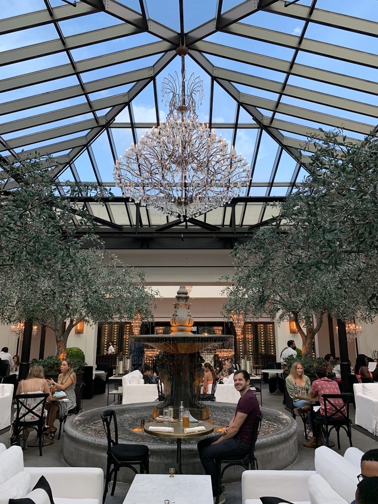 RH Rooftop Restaurant West Palm features an ingredientdriven menu accompanied by a selection of artisanal wines and craft beers, guests dine beneath a glassandsteel atrium amidst trickling fountain, heritage olive trees and glimmering chandeliers.