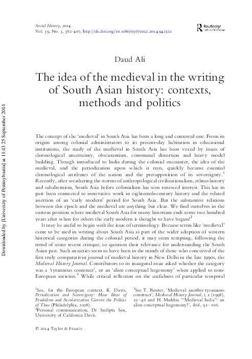 Pdf The Idea Of The Medieval In The Writing Of Indian History Contexts Methods Politics Daud Ali Academia Edu