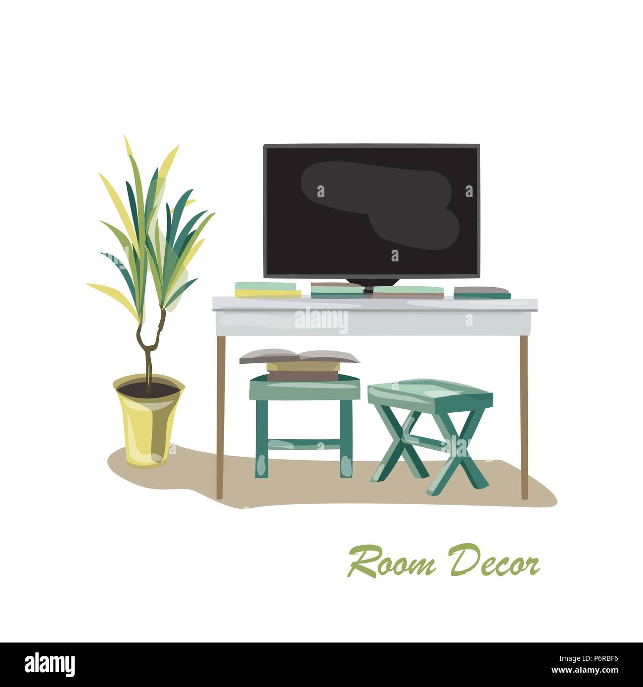 Interior Design Illustration Sketch Flat Modern Elements Living Room Trendy Style Home House Decoration Table Tv Unit Chair Stool Books Magazines P Stock Vector Image Art Alamy