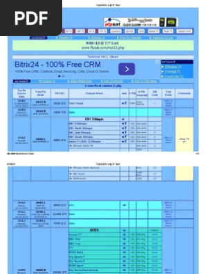 ترددات قمر nss 12 درجة 57 شرقا نتعرف اليوم على قمر nss 12 ، يقع قمر nss 12 في درجة 57 شرقا وهدا يعني أنه قريب من قمر ياه سات 525 شرقا أي بعده في اتجاه اليسار وأنت خلف الطبق , بالتالي فهو سهل الاستقبال لكن يحتاج في بعض الترددات الى. Ovi dokumenti SatelliteTVa su posvećeni Evropskim gledaocima Sve informacije se ažuriraju svaki dan. 2 Satellite EthioSAT NSS12 57 Degree Frequency Symbol rate Polarity Horizontal 44 ONN Channel Satellite Euatlesat 8 West Frequency Symbol rate Polarity Horizontal 45 CNBC Africa Ethiopia Channel Satellite EthioSAT NSS12 57 Degree Frequency Symbol rate Polarity Horizaontal 46 Menilik Television Channel.