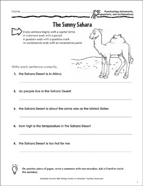 The Sunny Sahara Punctuating Statements Questions And Exclamations Printable Skills Sheets
