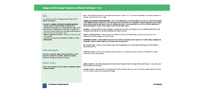 Annotated D T Programmes Of Study Ks1 To Ks3 Key Messages Advice And Explanatory Notes For Schools Teachwire Teaching Resource