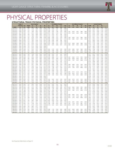 (50ksi) studs spaced 24 in oc and connected with No 10 flathead screws to 600T (50ksi) track (member nomenclature per AISIS007) Studs were spaced at 24 in oc and braced with CRC as detailed in Figure 4a Chord studs consisted of backtoback studs assembled with pairs of No 10 flathead screws spaced every 12 in. Stronger than steel sm coldformed structural framing products technical design guide member properties & spans • curtain walls • loadbearing walls • joists • framing details. The Steel Network offers a wide range of products In an effort to becoming a full service manufacturer, we offer standard Cshaped studs & Track in addition to our other proprietary products.