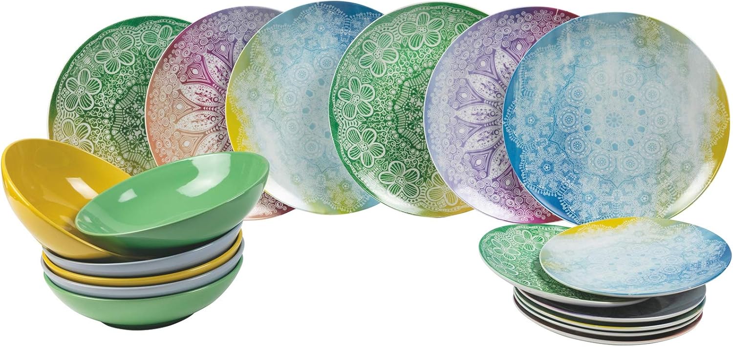 Villa Deste Home Tivoli Marrakech Table Service Porcelain Multicolored 18 Units Home Kitchen Home Garden Store